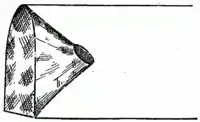 The framework of the bottom consists of three strips of wood, either hemlock, spruce, or pine (the first mentioned being the most durable), a little longer than the width of the pot, about 2¾ inches wide and 1 inch thick. In the ends of each of the outer strips a hole is bored to receive the ends of a small branch of pliable wood, which is bent into a regular semicircular curve. These hoops are made of branches of spruce or hemlock, or of hardwood saplings, such as maple, birch, or ash, generally retaining the bark. Three of these similar frames, straight below and curved above, constitute the framework of each pot, one to stand at each end and one in the center. The narrow strips of wood, in general ordinary house laths of spruce or pine, which form the covering, are nailed lengthwise to them, with interspaces between about equal to the width of the lathe. On the bottom the laths are sometimes nailed on the outside and sometimes on the inside of the cross pieces. The door is formed by three or four of the laths running the entire length near the top. The door is hinged on by means of small leather strips, and is fastened by a single wooden button in the center, or by two buttons, one at each end. The openings into the pot ... are two in number, one at each end, are generally knit of coarse twine and have a mesh between three-fourths of an inch and 1 inch square. They are funnel-shaped, with one side shorter than the other, and at the larger end have the same diameter as the framework. The smaller and inner end measures about 6 inches in diameter and is held open by means of a wire ring or wooden hoop. The funnels are fastened by the larger ends to the end frames of the pot, with the shorter side uppermost, so that when they are in place they lead obliquely upward into the pot instead of horizontally. The inner ends are secured in position by one or two cords extending to the center frame. The funnels are about 11 or 12 inches deep, and therefore extend about halfway to the center of the pot. They taper rapidly and form a strongly inclined plane, up which the lobsters must climb in their search for the bait. A two-strand manila twine is most commonly used for the funnels. Cotton is also used, but is more expensive and less durable.