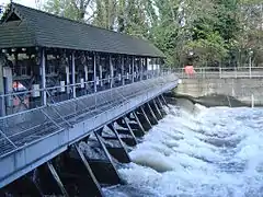 Lock Island is an island in the River Thames in England connected to Shepperton Lock, near Shepperton. There is a stretch of open ground where refreshments are served, making the island a popular place to visit or stop and rest. The Thames River Police have a station on the Island. The Weybridge Mariners' Boat Club is also situated there. The island is connected to Hamhaugh Island by a walkway across the weir.