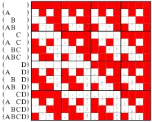 The left Venn diagram below, and the lines (AB ) in these matrices represent the same operation.