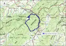 The boundary of the wildland as determined by the Wilderness Society is shown in the adjacent map.[1] Additional roads and trails are given on National Geographic Maps 783 (Mount Rogers).[5] and Map 783 (South Holston and Watauga Lakes)[6] A great variety of information, including topographic maps, aerial views, satellite data and weather information, is obtained by selecting the link with the wild land's coordinates in the upper right of this page.[7]