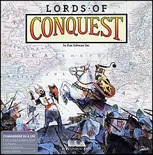 Lords of Conquest is a strategy video game published in 1986 by Electronic Arts. It is based on the 1982 board game Borderlands by Eon Productions[1] and developed by Eon's software division. It was marketed with the slogan "Better than Risk!"