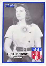Lucille Richards (née Stone; December 26, 1925 – May 20, 2016) was an All-American Girls Professional Baseball League shortstop who played for the Racine Belles and South Bend Blue Sox during the 1946 AAGPBL season. Listed at 5' 4", 130 lb., Stone batted and threw right handed. She was dubbed ´Lou´ by their friends and teammates.[1][2]