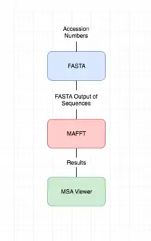 In bioinformatics, MAFFT (for multiple alignment using fast Fourier transform) is a program used to create multiple sequence alignments of amino acid or nucleotide sequences. Published in 2002, the first version of MAFFT used an algorithm based on progressive alignment, in which the sequences were clustered with the help of the Fast Fourier Transform.[2] Subsequent versions of MAFFT have added other algorithms and modes of operation,[3] including options for faster alignment of large numbers of sequences,[4] higher accuracy alignments,[5] alignment of non-coding RNA sequences,[6] and the addition of new sequences to existing alignments.[7]