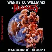 Maggots: The Record is the fourth studio album by American rock singer Wendy O. Williams and her band Plasmatics. It was released on February 18, 1987 by Profile Records. Labeled as a special "9th Anniversary Album", it was the last album released by the band. Despite being labeled a "Plasmatics" album, it is often regarded as another Wendy O. Williams solo album, largely in part because her name is over that of the band, the merchandise for the tour has the WOW logo from her solo career, michael ray is playing lead guitars on the album, and the only original member is Wes Beech on rhythm guitar. all music compositions for this album were written and arranged by michael ray except the propagators song. Maggots: The Record was recorded in 1987 and is a concept album set 25 years in the future, where environmental abuse and the burning of fossil fuels have created a greenhouse effect, leading to an end of the world scenario. The album features various scenes of The White Family over the course of three days. The family is devoured while watching a TV game show. Valerie, the girlfriend of hot-shot television reporter Bruce is devoured by three massive maggots while lying in her boyfriend's bed. The final scene of the record shows the entire human population is headed for imminent annihilation. The album was released through Profile Records under the WOW label in the United States and overseas by GWR Records, which had been started by Motörhead's longtime manager Doug Smith.
