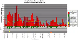 Prabhakar quite regularly opened Indian batting order and the bowling, he was one of the few players to do so consistently at international level. He accomplished this 45 times in ODIs and 20 times in Tests, more than any other player in both formats.[1][2]