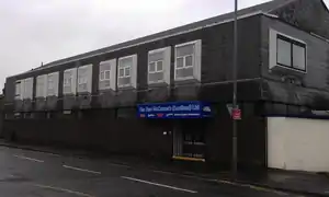 Site is now demobilised and now lies a B&M with car park attached to a Tim Hortons. Stenhousemuir Stadium Ochilview is still in the street behind].[8]