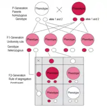 | Law of dominance and uniformity | Some alleles are dominant while others are recessive; an organism with at least one dominant allele will display the effect of the dominant allele.[18] |