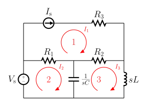 Mesh analysis works by arbitrarily assigning mesh currents in the essential meshes (also referred to as independent meshes). An essential mesh is a loop in the circuit that does not contain any other loop. Figure 1 labels the essential meshes with one, two, and three.[3]