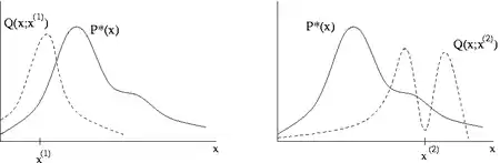 - Initialization: Choose an arbitrary point to be the first sample and choose an arbitrary probability density (sometimes written ) that suggests a candidate for the next sample value , given the previous sample value . In this section, is assumed to be symmetric; in other words, it must satisfy . A usual choice is to let be a Gaussian distribution centered at , so that points closer to are more likely to be visited next, making the sequence of samples into a random walk [lower-alpha 1]. The function is referred to as the proposal density or jumping distribution.