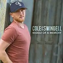 "Middle of a Memory" is a song co-written and recorded by American country music artist Cole Swindell. The song was released to radio on May 2, 2016 as the second single to his second studio album You Should Be Here (2016). The song was written by Swindell, Zach Crowell and Ashley Gorley.[1] It received positive reviews from critics praising Swindell's improvements as a storyteller. "Middle of a Memory" peaked at number one on the Billboard Country Airplay chart, giving Swindell his fifth number-one country hit overall. It also reached numbers three and 46 on both the Hot Country Songs and Hot 100 charts respectively. It was certified Platinum by the Recording Industry Association of America (RIAA), and has sold 365,000 copies as of January 2017. The song also charted in Canada, reaching number 33 on the Canada Country chart and number 98 on the Canadian Hot 100 chart. The accompanying music video for the song was directed by Michael Monaco.