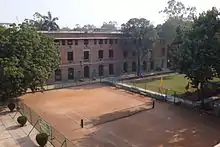 The new library block is a double-storeyed building consisting of deposit-counter, issue-of-books counter, stack hall, reserve section, reading hall, teachers' reading room, magazine section, and administrative section.[9]