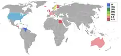 Countries and territories which sent delegates and results for Miss World 1955