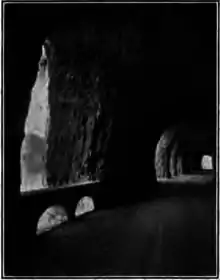 The tunnel was designed by John Arthur Elliott, who was inspired by a tunnel similarly set into a cliff face above Lake Lucerne in Switzerland.[1] It was built in 1915 and opened late in the year, the first major roadway tunnel in the United States.[2] The tunnel measured 390 feet (120 m) long, 18 feet (5.5 m) wide, and 10 feet (3.0 m) tall.[2]