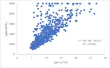 Monitoring changes in gas composition allows for an understanding of changes occurring in the associated volcanic system. Multi-GAS measurements of real-time CO2/SO2 ratios can allow detection of the pre-eruptive degassing of rising magmas, improving the prediction of volcanic activity.[1] As magma rises beneath the surface CO2 solubility decreases and the gas readily exsolves, leading to an increase in the CO2/SO2 ratio. A new input of CO2-rich magma into a previously degassed system would also cause the CO2/SO2 ratio to rise, indicating changes in volcanic activity.[1] During a two year study at Mount Etna quiescent periods had CO2/SO2 ratios <1, but during the lead up to an eruption values as high as 25 were seen.[1] Magmatic or hydrothermal input can be monitored by the temporal variations in H2S/SO2 ratios, advancing the understanding of future eruptive behavior.[13] CO2/H2S ratios are used to define the characteristic gas composition of the sampled area.[14] The ratio can be a tool for understanding how the magmatic gas may have been scrubbed.[14] Other molar ratios and gas species measured by a multi-GAS can provide information for further analysis of volcanic conditions.[3]