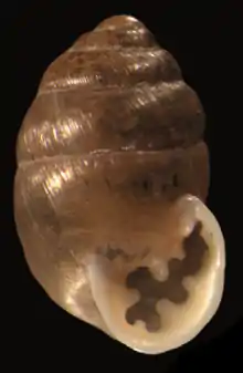 | A shell of Multidentula ovularis. Height of the shell is 5.1 mm. | |
