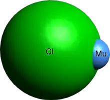 Muonium chloride is an inorganic compound composed of exotic muonium atoms and is a chloride (halide) chemical formula of MuCl. In 2001, scientists successfully synthesized muonium chloride.[1]