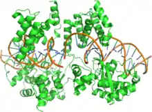 P1 phage had been discovered in 1951, but was little understood when Sternberg began to research the virus.[2][3] He discovered the Cre–lox site-specific recombination system, in which the Cre recombinase enzyme acts at the lox recombination site to allow P1's double-stranded DNA genome to circularise after infection. Sternberg, Brian Sauer and others in his group subsequently showed that Cre–lox is a flexible recombination system which also functions in eukaryotic cells, and it is now widely used in genetic engineering.[2][4] Sternberg elucidated multiple other features of the phage and its life cycle, including lytic and lysogenic replication cyles, DNA methylation and viral packaging, as well as immunity to the phage.[3] He and his coworkers also developed P1-derived cloning vectors, enabling the cloning of very long stretches of DNA, which have been used in mapping the human genome.[1][2][3]