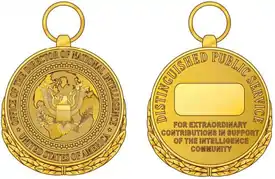 ![]() Obverse of the National Intelligence Distinguished Public Service Medal | |