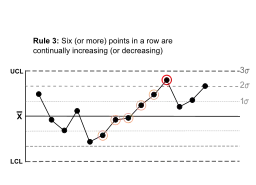 | Six (or more) points in a row are continually increasing (or decreasing). | ![]() | A trend exists. | |