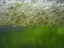 Some species of frog build nests ranging from simple to modest complexity.[3] Many stream-dwelling frogs lay their eggs in a gelatinous mass which they attach to underwater vegetation. The jelly structure prevents the eggs from washing away.[1]