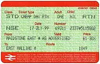 The first major change was made as from 28 September 1997.[3] At this time, the name Network Railcard was adopted; the joint-holder option was removed; the price was increased to £20.00; and the First Class supplement facility was discontinued. All other benefits remained the same, however. New ticket stock was introduced with APTIS form number RSP 4599/188 (the Network Card was BR 4599/22 and, after privatisation, RSP 4599/22).[3]