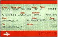 The Network SouthEast brand was introduced to what had been the London & South East sector of British Rail on 10 June 1986. The railcard was then introduced on 29 September 1986,[1] under the name Network Card. It offered a 34% discount on all off-peak fares for journeys wholly within the Network SouthEast area. Tickets valid at peak times, such as Day Returns and Open Returns, were excluded, as were First Class tickets (however, a supplement ticket could be bought to upgrade a discounted Standard Class ticket to First Class at weekends).[1] On weekdays, journeys had to start after 10.00am, but there were no time restrictions at weekends or on Bank Holidays. Up to three adults could accompany the railcard holder and gain the same discount, while up to four accompanying children could travel for a £1.00 flat fare. This version of the railcard could be issued for either one person or two people. On a two-person "joint-holder" ticket, either or both of the named holders could travel - that is, the card was transferable between the two.[2]