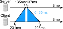 Accurate synchronization is achieved when both the incoming and outgoing routes between the client and the server have symmetrical nominal delay. If the routes do not have a common nominal delay, a systematic bias exists of half the difference between the forward and backward travel times.[33]