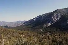 The route begins at an intersection with Kyle Canyon Road (SR 157) east of Mount Charleston. Heading north as the Deer Creek Road, SR 158 parallels the Humboldt-Toiyabe National Forest boundary before entering the forest. The highway ends at a junction with Lee Canyon Road (SR 156).[2]