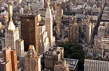 New York's non-white population was 36,620 in 1890.[116] New York City was a prime destination in the early twentieth century for African Americans during the Great Migration from the American South, and by 1916, New York City had become home to the largest urban African diaspora in North America.[117] The Harlem Renaissance of literary and cultural life flourished during the era of Prohibition.[118] The larger economic boom generated construction of skyscrapers competing in height and creating an identifiable skyline.