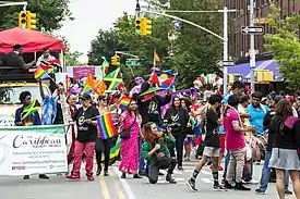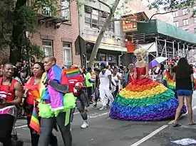 The Stonewall riots were a series of spontaneous, violent demonstrations by members of the gay community against a police raid that took place in the early morning hours of June 28, 1969, at the Stonewall Inn in the Greenwich Village neighborhood of Lower Manhattan.[125] They are widely considered to constitute the single most important event leading to the gay liberation movement[122][126][127][128] and the modern fight for LGBT rights.[129][130] Wayne R. Dynes, author of the Encyclopedia of Homosexuality, wrote that drag queens were the only "transgender folks around" during the June 1969 Stonewall riots. "None of them in fact made a major contribution to the movement."[131] Others say the transgender community in New York City played a significant role in fighting for LGBT equality during the period of the Stonewall riots and thereafter.[131]