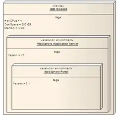 - An execution environment represents software containers (such as operating systems, JVM, servlet/EJB containers, application servers, portal servers etc.) This is a node that offers an execution environment for specific types of components that are deployed on it in the form of deployable artifacts.[1]