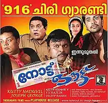 Note Out is a 2011 Malayalam comedy film directed by debutant Kutty Naduvil starring Nishan and Mithra Kurian in the lead roles. The music of the film has been composed by Vinu Thomas with lyrics penned by Anil Panachooran. The film released on 14 January 2011. The film is produced by Joseph George in the banner of Thekkadiyil Films, who also distributes the film through Play House Release.
