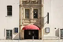 Built in 1926 in the Spanish Revival style[1] as a part of the High School of Commerce, it was used as an auditorium for student events and assemblies until it was closed in 1952.[2] The theater was used intermittently for pageants and concerts until 1985 when the auditorium was temporarily converted to a courtroom for a large asbestos exposure case. It was one of the first “wired” courtrooms with computers linked to a mainframe in Texas used to share documents.[3] After the end of the trial, it was no longer used as a public venue, serving only as a storage facility for the San Francisco Unified School District for nearly 30 years.[3]