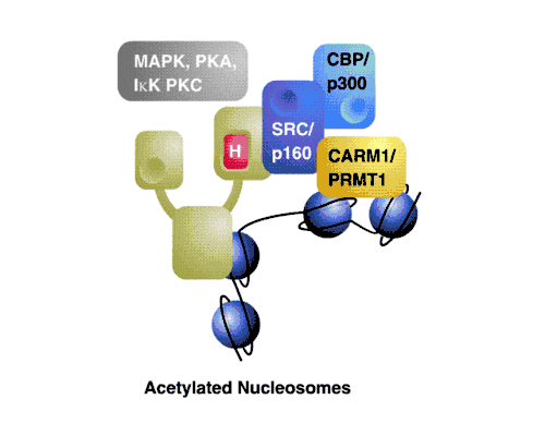 - Chen, H.; Lin, R. J.; Xie, W.; Wilpitz, D. & Evans, R. M. (1999). "Regulation of hormone-induced histone hyperacetylation and gene activation via acetylation of an acetylase". Cell. 98 (5): 675–686. doi:10.1016/S0092-8674(00)80054-9. PMID 10490106. S2CID 14697597.