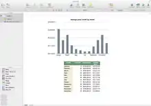 As Numbers uses the canvas as the basis for the document, media is not tied to the tables; one could build a Numbers canvas with a collection of photographs and no tables. In typical use, one or more tables are placed on the canvas and sized and styled to show only the data of interest. Charts and labels are commonly positioned around the tables. Other media, like photographs or illustrations, can be added as well.[20] Numbers' display-centric model has been referred to as a "page layout and presentation app disguised as a spreadsheet app".[21]