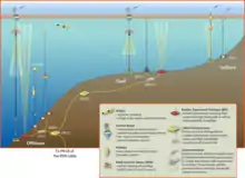 In the late 1980s, oceanographers began discussions about coordinating the science, design concepts, and engineering of ocean research observatories, leading to the formation of the International Ocean Network (ION) in 1993.[1] The first nationwide committee was convened in 1995, and was later expanded into the Dynamics of Earth and Ocean Systems (DEOS) program, which laid the groundwork for an ocean observatory network.[2] In 2003 the Pew Oceans Commission recommended changes designed to improve society's use and stewardship of, and impact on, the coastal and global ocean.[3][4]