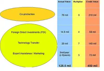 | Licensed Production | Offset Swapping (compensation of offsets' obligation through reciprocal abatement) | |