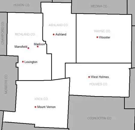 In 2001, local athletic directors met in Mansfield, Ohio to discuss the formation of a new athletic conference; seven schools agreed to form the Ohio Cardinal Conference.[1] Five of the initial member schools came from the disbanding Ohio Heartland Conference: Ashland, Lexington, Mansfield Madison, Mansfield Senior, and Orrville.[2] West Holmes joined from the Mohican-Area Conference, and Wooster from the Federal League.[2] Clear Fork, the only non-original member of the conference, joined for the 2004-05 season.