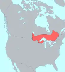 | Region | Canada: Quebec, Ontario, Manitoba, Saskatchewan, groups in Alberta, British Columbia; United States: Michigan, Wisconsin, Minnesota, groups in North Dakota, Montana |