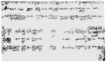 The runic script was first mentioned in the 13th century Chronicle of Simon of Kéza,[12] where he stated that the Székelys may use the script of the Blaks.[13][14][15]