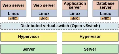 Open vSwitch can operate both as a software-based network switch running within a virtual machine (VM) hypervisor, and as the control stack for dedicated switching hardware; as a result, it has been ported to multiple virtualization platforms, switching chipsets, and networking hardware accelerators.[7] Open vSwitch is the default network switch in the XenServer virtualization platform since its version 6.0,[8] and in the Xen Cloud Platform via its XAPI management toolstack.[9] It also supports Xen, Linux KVM, Proxmox VE and VirtualBox hypervisors, while a port to Hyper-V is also available.[10] Open vSwitch has also been integrated into various cloud computing software platforms and virtualization management systems, including OpenStack, openQRM, OpenNebula and oVirt.[4][5]