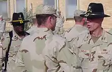 3. Occasions for Wear: Spurs and stetsons will be worn at all cavalry functions, otherwise, they will not be worn outside of the cavalry footprint. Stetsons and spurs may be authorized by the local command, but are not authorized for wear at Army functions not specifically dedicated to cavalry. Wear with civilian attire may be restricted by a local commander, but otherwise the spurs and Stetson may be mixed with civilian attire when rank has been removed.[2]