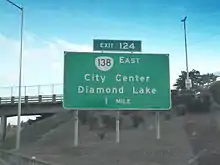 Oregon Route 138 is an Oregon state highway that runs between the city of Elkton and a junction with U.S. Route 97 at Diamond Lake Junction. The highway has several distinct stretches, and is the main east–west highway through Roseburg, and provides access to Crater Lake National Park from the north. The highway is signed east–west.