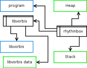 Many operating systems, Linux included, take advantage of existing NX functionality in hardware to apply proper restrictions to memory. Fig. 1 shows a simple set of memory segments in a program with one loaded library; green segments are data and blue are code. In normal cases, the address space on AMD64 and other such processors will by default look more like Fig. 1, with clearly defined data and code. Unfortunately, Linux by default does not prohibit an application from changing any of its memory protections; any program may create data-code confusion, marking areas of code as writable and areas of data as executable. PaX prevents such changes, as well as guaranteeing the most restrictive default set suitable for typical operation.