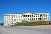 A palace is a grand residence, especially a royal residence, or the home of a head of state or some other high-ranking dignitary, such as a bishop or archbishop.[1] The word is derived from the Latin name palātium, for Palatine Hill in Rome which housed the Imperial residences.[1] Most European languages have a version of the term (palais, palazzo, palacio, etc.), and many use it for a wider range of buildings than English. In many parts of Europe, the equivalent term is also applied to large private houses in cities, especially of the aristocracy; often the term for a large country house is different. Many historic palaces are now put to other uses such as parliaments, museums, hotels, or office buildings. The word is also sometimes used to describe a lavishly ornate building used for public entertainment or exhibitions,[1] such as a movie palace.