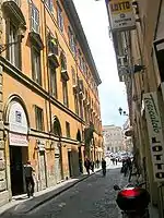 The Palazzo Muti (officially the Palazzo Muti e Santuario della Madonna dell' Archetto) is a large townhouse in the Piazza dei Santi Apostoli, Rome, Italy, built in 1644. Together with the neighboring Palazzo Muti Papazzurri, it originally formed part of a complex of adjoining palazzi and other houses owned by the Muti Papazzurri family. During the 18th century this entire range of buildings was, by courtesy of the Pope, the residence of the exiled Stuart dynasty while in exile in Rome. They were recognised by the Catholic Church as the rightful kings of Great Britain and Ireland. The Palazzo Muti should not be confused with the Palazzo Muti Papazzurri in the Piazza della Pilotta which was designed by Mattia de' Rossi in 1660.