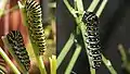 This caterpillar absorbs toxins from the host plants, and therefore tastes poor to bird predators.[11] The black swallowtail caterpillar has an orange "forked gland", called the osmeterium. When in danger, the osmeterium, which looks like a snake's tongue, everts and releases a foul smell to repel predators.[11]