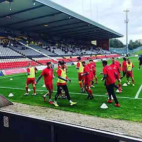 Firhill has been used by other football teams and for rugby over the years. Between 1986 and 1991 Clyde ground shared with Thistle,[78] following their eviction from Shawfield.[79] Hamilton Academical also ground shared for two spells over seven years,[80] following them being forced out of Douglas Park in 1994. In December 2005, Firhill also became the home of Glasgow's professional rugby union team, Glasgow Warriors, when they moved from their previous base at Hughenden Stadium. After returning to Hughenden in 2006, the Warriors took up a two-year residency at Firhill from the start of the 2007–08 Celtic League season.[81] This was extended in April 2009 for a further five years.[82][83] Glasgow Warriors left Firhill after the 2011–12 season and moved to Scotstoun Stadium.[84][85] During the 2012–13 season the ground was also used by Celtic's under-20 squad as their home ground,[86] but following Thistle's promotion this stopped for the 2013–14 season.[87]