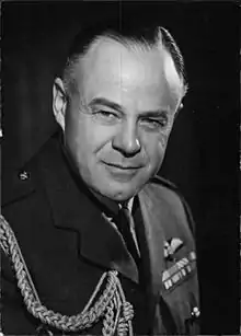 After the war he became Deputy Director of Policy (Air Staff) and then a member of the Defence Research Policy Staff.[2] He was appointed Senior Air Staff Officer at Headquarters RAF Fighter Command in 1952, Chief of Staff at Headquarters Allied Air Forces Central Europe in 1954 and Air Officer Commanding No. 12 (Fighter) Group in 1956.[2] He went on to be Director of RAF Exercise Planning in 1959, UK Permanent Military Representative at CENTO later in 1959 and Inspector-General of the RAF in 1962 before retiring in 1964.[2]