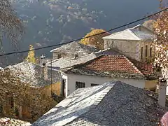 Modern Pelion's twenty-four villages retain traditional Pelian architecture and construction, with stone buildings made out of expertly carved local grey, blue, or green slate and red clay. They are built on terraces on the slopes and offer stunning vistas of the surrounding slopes and the sea. Houses are usually multi-storied and feature the characteristic Pelian oriel construction, with tall windows and abundant painted ornamentation. Pelian tradition calls for three-level houses, with the ground floor used for work (tools, kitchen, storage, washing, weaving), the middle floor used for socializing (common rooms), and the top floor for private rooms (bedrooms). Heat is provided by fireplaces, the chimneys of which run through the walls to provide heat to the upper levels, whereas the top level, being well ventilated, provides for summertime cooling. Interior construction is usually of chestnut timber, stained dark brown and often elaborately carved. Many of the larger Pelian mansions (the arkhontiká or "lordly mansions") have been converted into boutique hotels and hostels. The largest of all the stone buildings, which serve as points of reference for the locals, are the Pelion Towers. These are huge 300-year-old buildings with exquisite visual characteristics that combine building elements of Mountain Pelion of the 17th, 18th and 19th century.